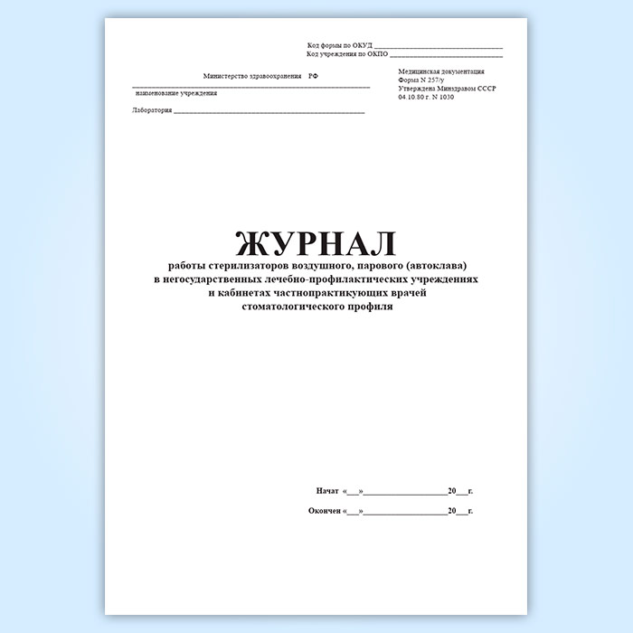 Журнал работы стерилизаторов воздушного, парового (автоклава) в негосударственных лечебно-профилактических учреждениях и кабинетах частнопрактикующих врачей стоматологического профиля (форма 257/у) в Фрязино купить