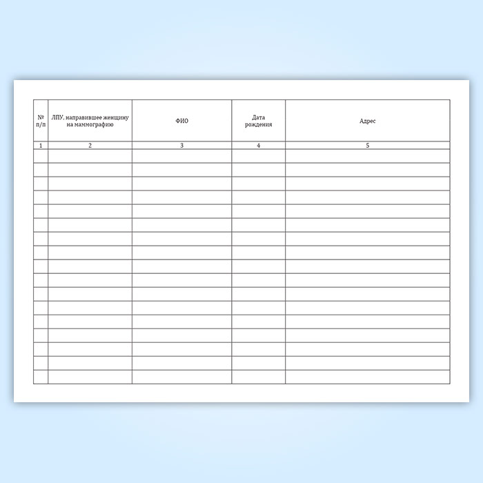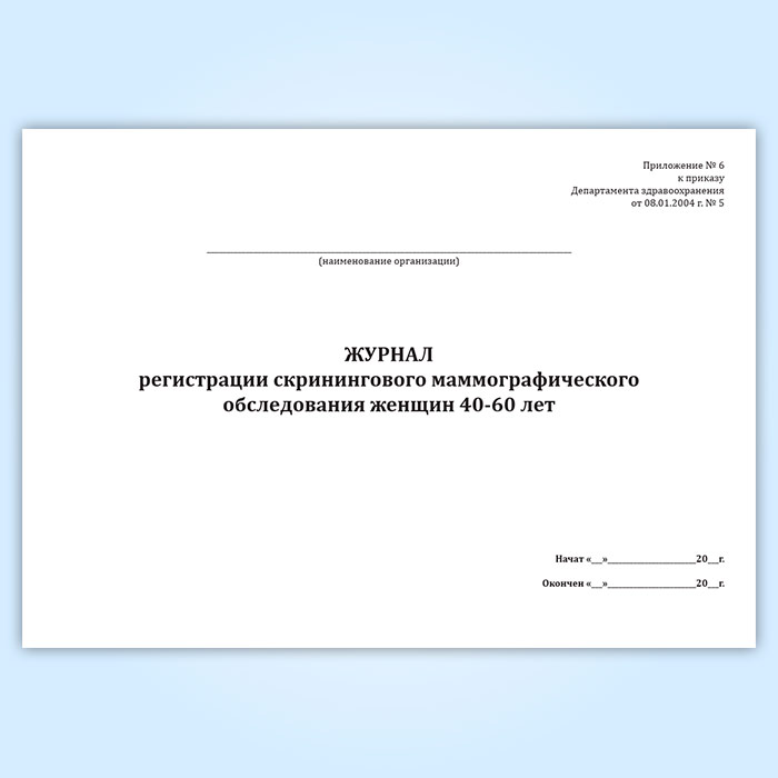 Журнал регистрации скринингового маммографического обследования женщин 40-60 лет в Фрязино купить