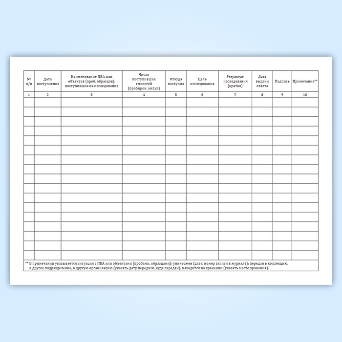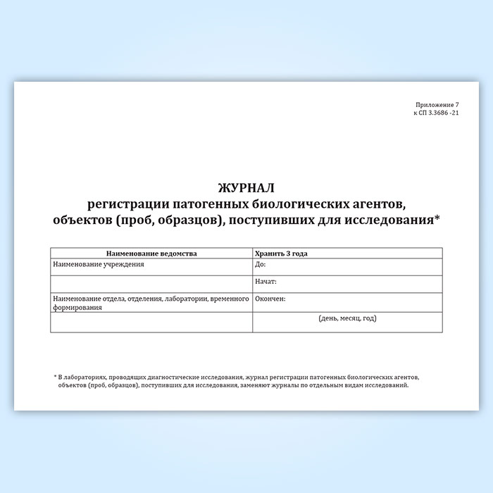 Журнал регистрации патогенных биологических агентов, объектов (проб, образцов), поступивших для исследования в Фрязино купить