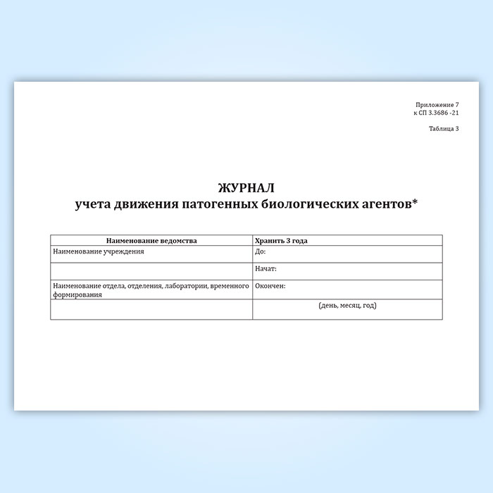 Журнал учета движения патогенных биологических агентов (СанПиН 3.3686-21) в Фрязино купить