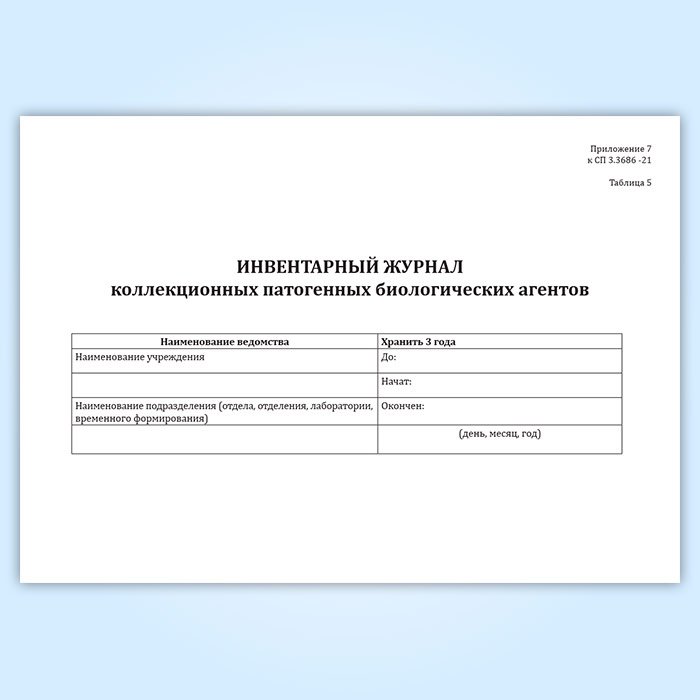 Инвентарный журнал коллекционных патогенных биологических агентов (СанПиН 3.3686-21) в Фрязино купить