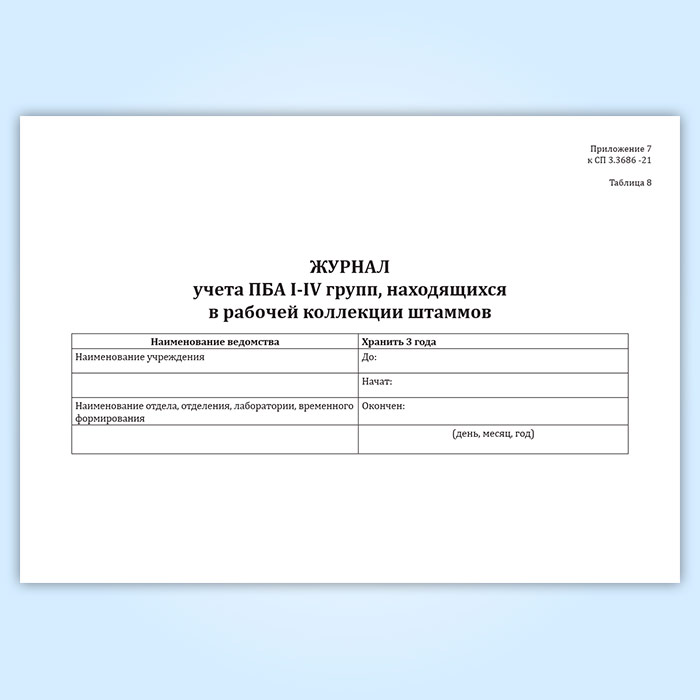 Журнал учета ПБА I-IV групп, находящихся в рабочей коллекции штаммов в Фрязино купить