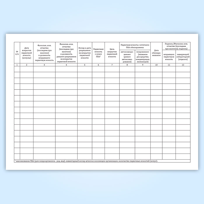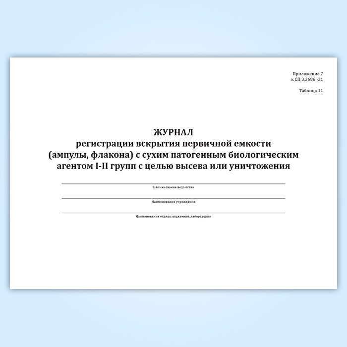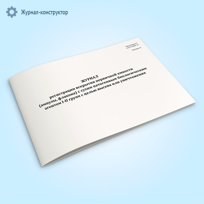 Журнал регистрации вскрытия первичной емкости (ампулы, флакона) с сухим патогенным биологическим агентов I-II групп с целью высева или уничтожения в Фрязино купить