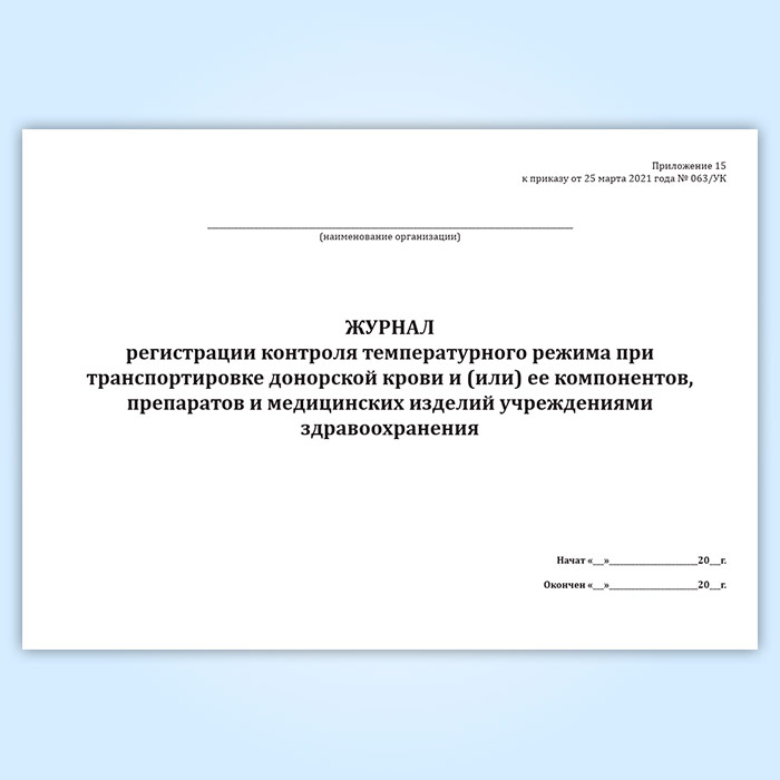 Журнал регистрации контроля температурного режима при транспортировке донорской крови и (или) ее компонентов, препаратов и медицинских изделий учреждениями здравоохранения в Фрязино купить