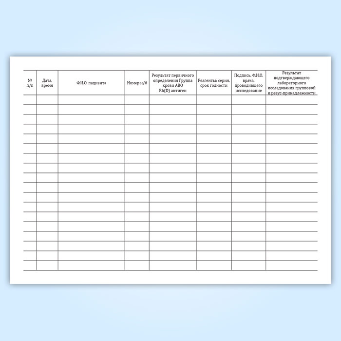 Журнал регистрации первичного определения группы крови в Фрязино купить