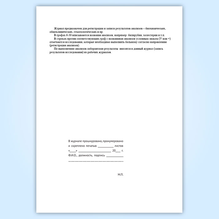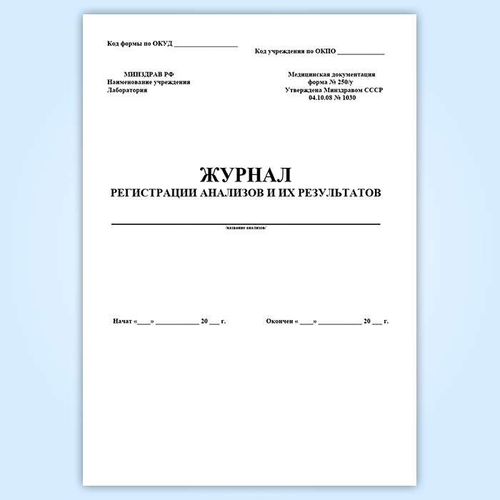 Журнал регистрации анализов и их результатов (форма 250/у) в Фрязино купить