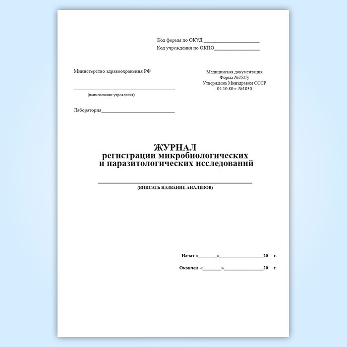 Журнал регистрации микробиологических и паразитологических исследований (форма 252/у) в Фрязино купить