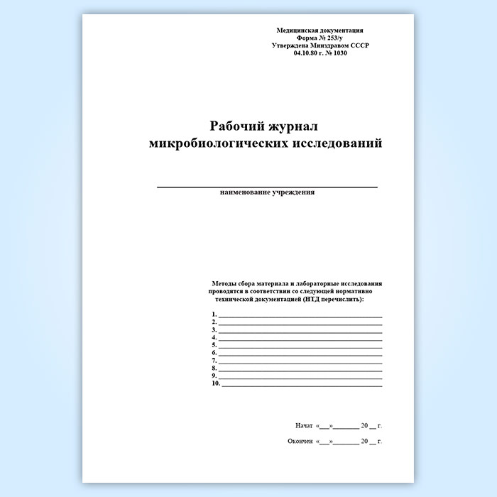 Рабочий журнал микробиологических исследований (форма 253/у) в Фрязино купить