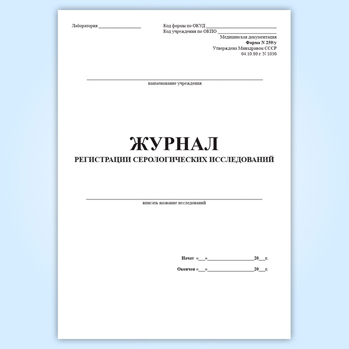 Журнал регистрации серологических исследований (форма 259/у) в Фрязино купить