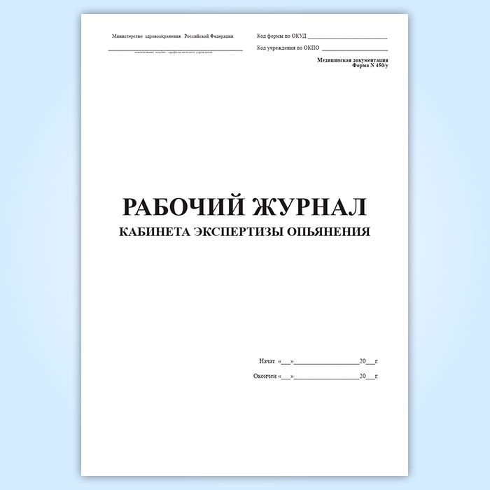 Рабочий журнал кабинета экспертизы опьянения (форма 450у) в Фрязино купить