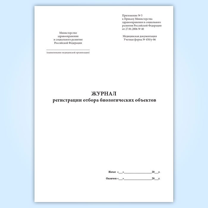 Журнал регистрации отбора биологических объектов (форма 450у-06) в Фрязино купить