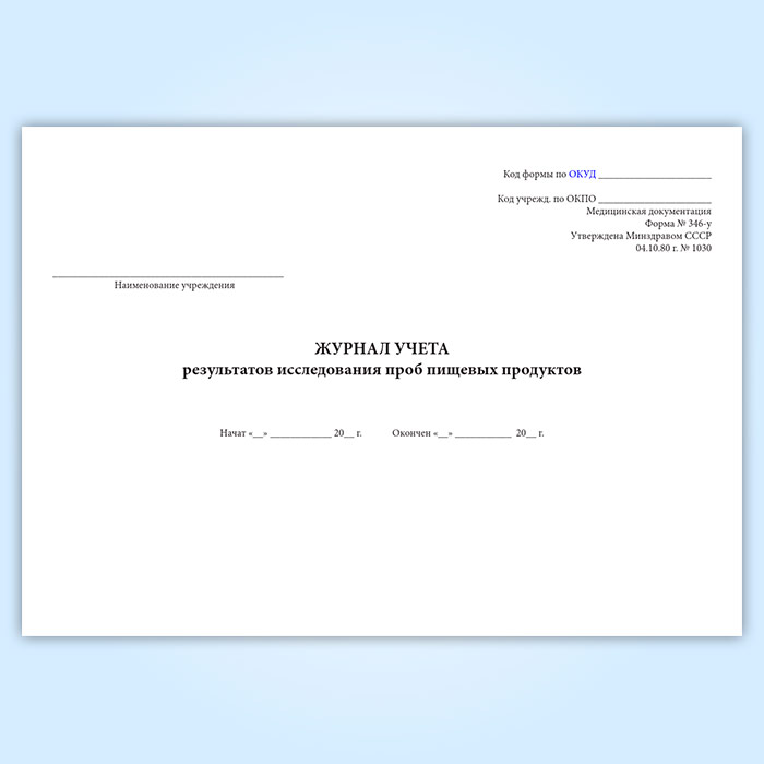 Журнал учета результатов исследования проб пищевых продуктов (форма 346/у) в Фрязино купить