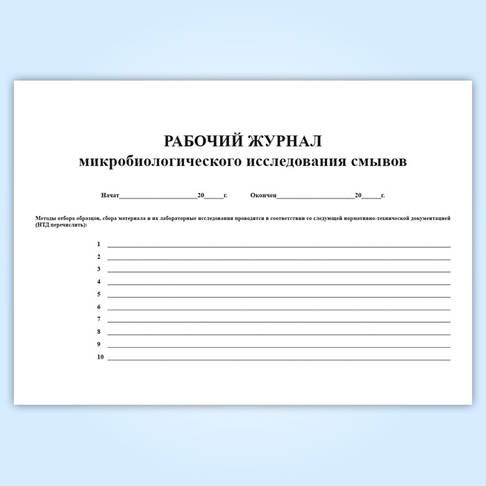 Рабочий журнал микробиологического исследования смывов (форма № 381у) в Фрязино купить