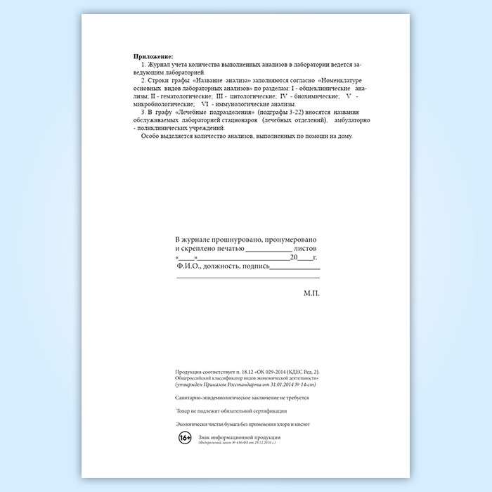 Вы получаете печатную продукцию прошнурованной и c местом для вашей печати в соответствии с действующими нормативными документами: