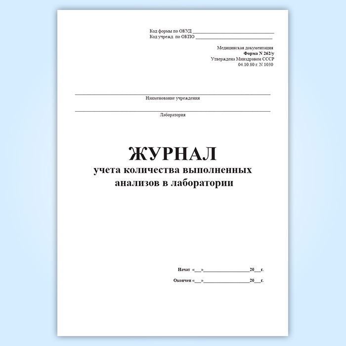 Журнал учета количества выполненных анализов в лаборатории (форма 262/у) в Фрязино купить