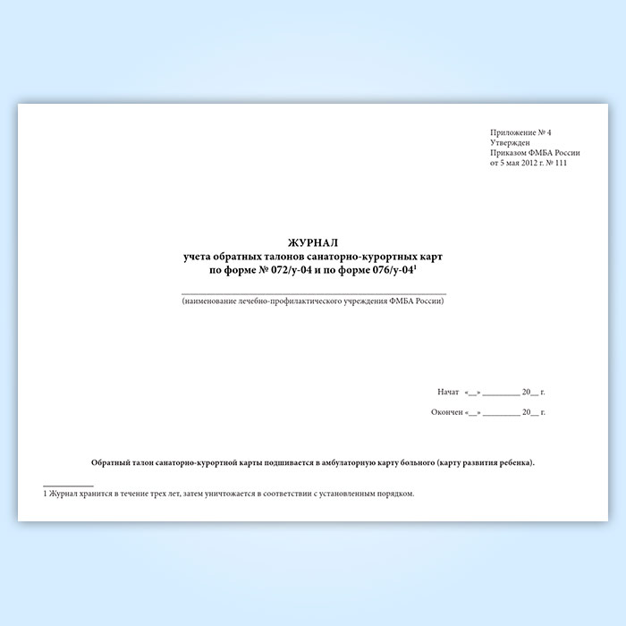 Журнал учета обратных талонов санаторно-курортных карт по форме (№ 072/у-04 и по форме 076/у-04 ) в Фрязино купить