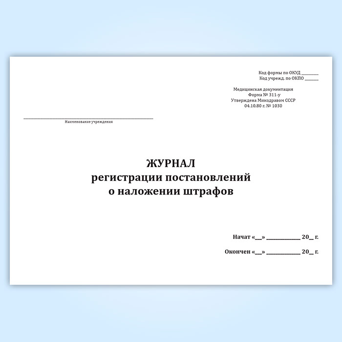 Журнал регистрации постановлений о наложении штрафов (форма 311-у) в Фрязино купить