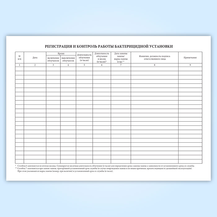 Журнал регистрации и контроля ультрафиолетовой бактерицидной установки (А4) в Фрязино купить