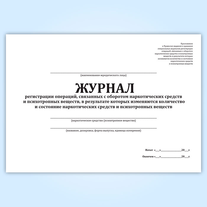 Журнал регистрации операций, связанных с оборотом наркотических средств и психотропных веществ, в результате которых изменяются количество и состояние наркотических средств и психотропных веществ в Фрязино купить
