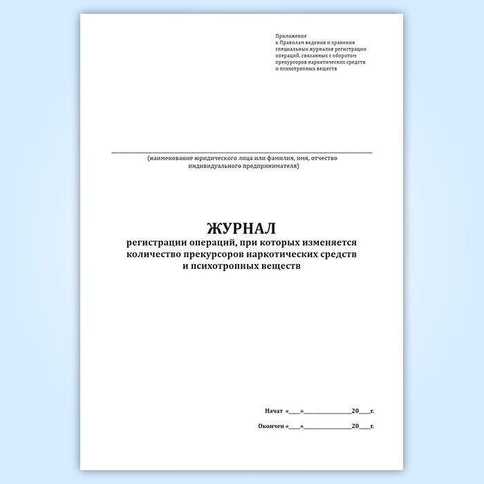 Журнал регистрации операций, при которых изменяется количество прекурсоров наркотических средств и психотропных веществ в Фрязино купить