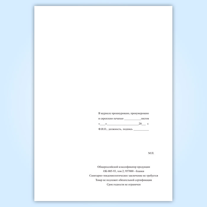 Вы получаете печатную продукцию прошнурованной и c местом для вашей печати в соответствии с действующими нормативными документами: