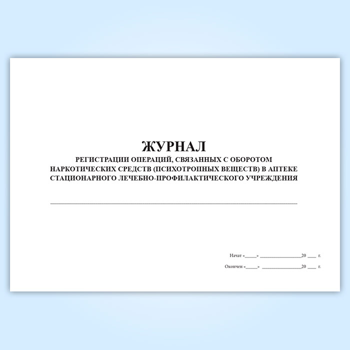 Журнал регистрации операций, связанных с оборотом наркотических средств и психотропных веществ в аптеке медицинской организации в Фрязино купить