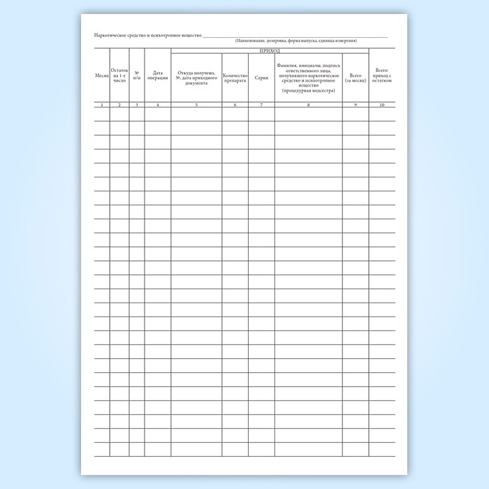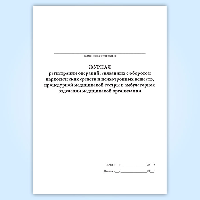 Журнал регистрации операций, связанных с оборотом наркотических средств и психотропных веществ, процедурной медицинской сестры в амбулаторном отделении медицинской организации в Фрязино купить