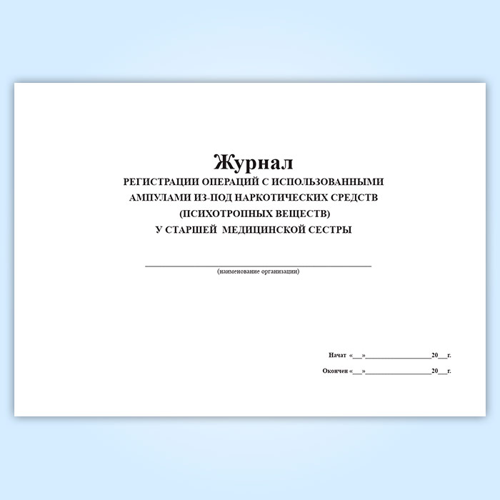Журнал регистрации операций с использованными ампулами из-под наркотических средств (психотропных веществ) у старшей медицинской сестры в Фрязино купить