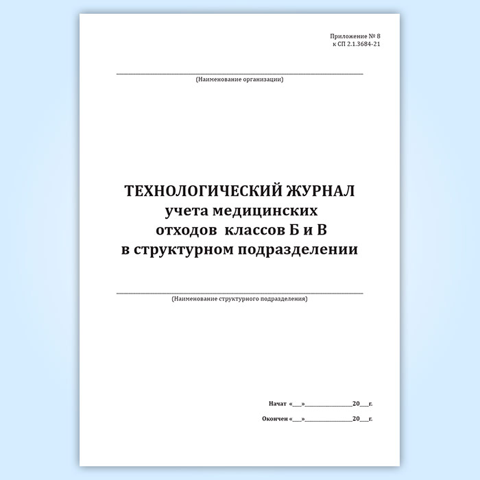 Технологический журнал учета медицинских отходов классов Б и В в структурном подразделении в Фрязино купить