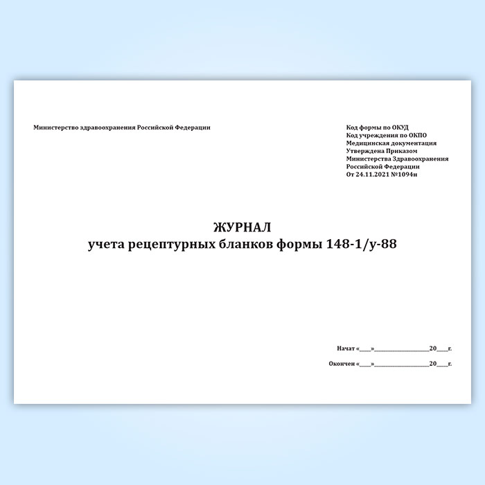 Журнал учета рецептурных бланков формы 148-1/у-88 (новый) (Приказ Минздрава России от 24.11.2021 N 1094н) в Фрязино купить