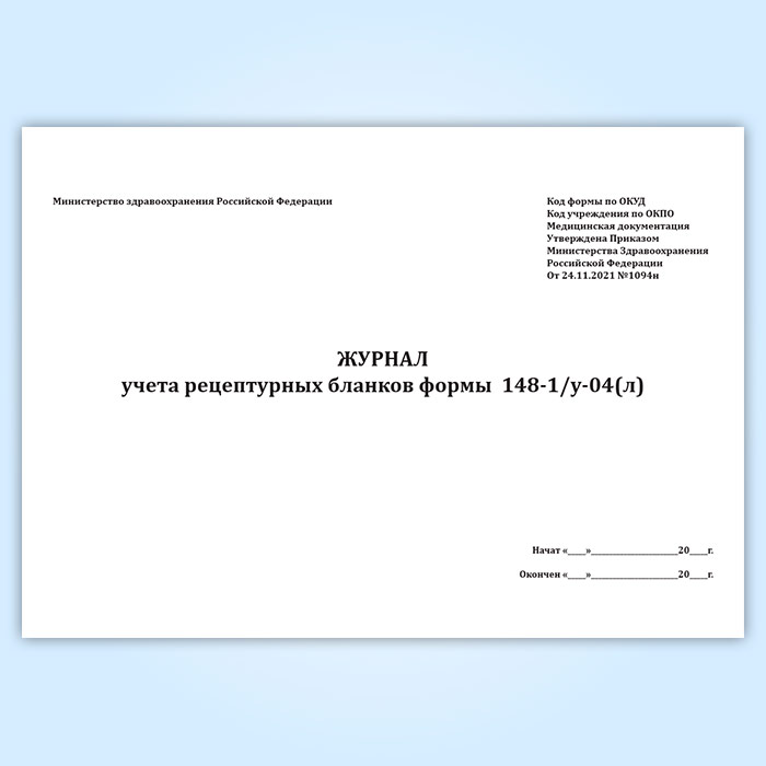 Журнал учета рецептурных бланков формы 148-1/у-04(л) (новый) (Приказ Минздрава России от 24.11.2021 N 1094н) в Фрязино купить