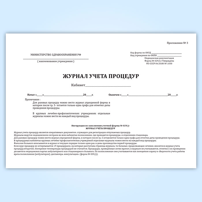 Журнал учета процедур (форма № 029/у) в Фрязино купить