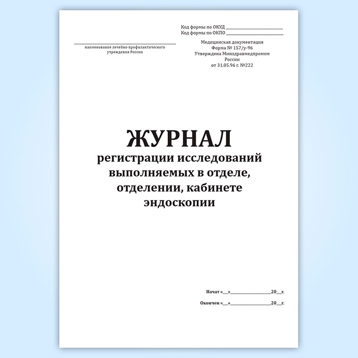 Журнал регистрации исследований выполняемых в отделе, отделении, кабинете эндоскопии (форма № 157/у-96) в Фрязино купить