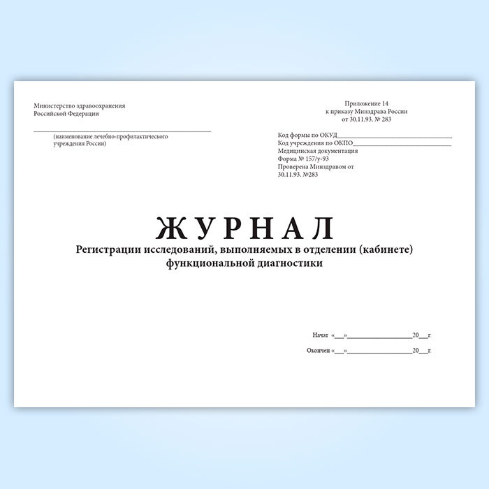 Журнал регистрации исследований, выполняемых в отделении (кабинете) функциональной диагностики (форма 157/у-93) в Фрязино купить