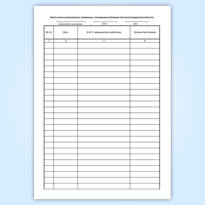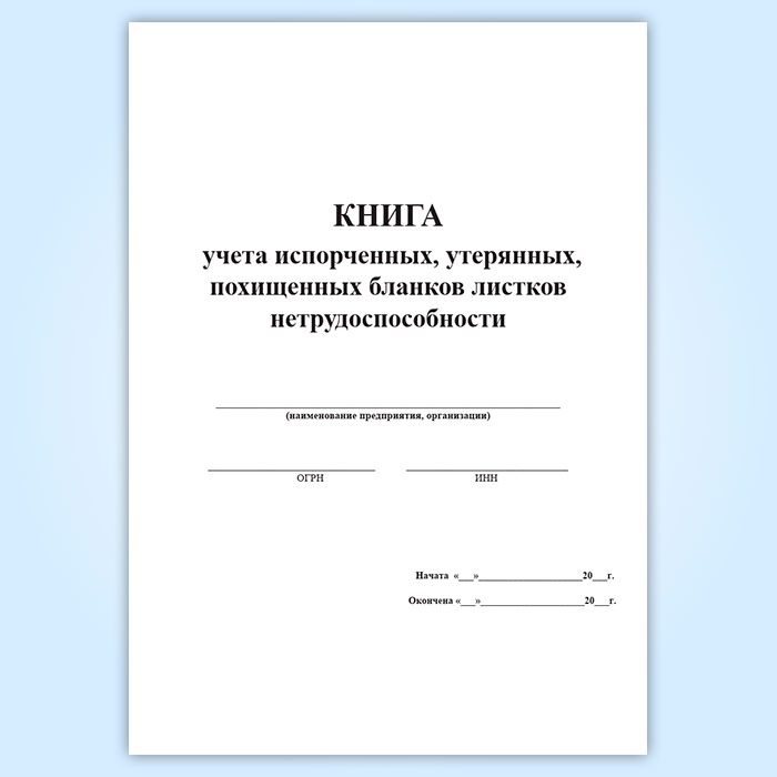 Книга учета испорченных, утерянных, похищенных бланков листков нетрудоспособности в Фрязино купить