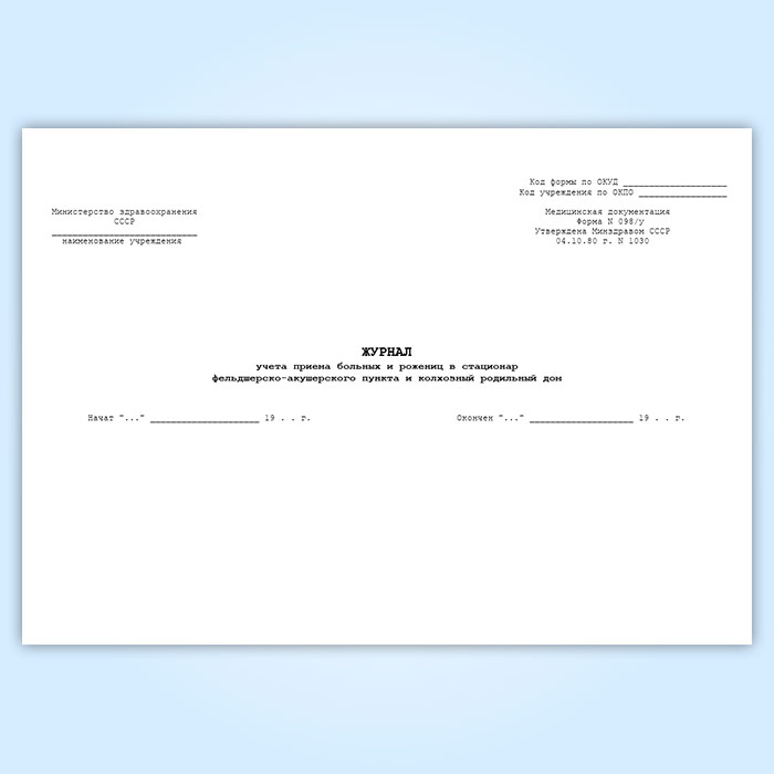 Журнал учета приема больных и рожениц в стационар фельдшерско-акушерского пункта, колхозного родильного дома (форма 098/у) в Фрязино купить