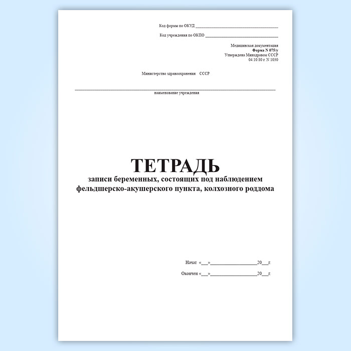 Тетрадь записи беременных, состоящих под наблюдением ФАП, колхозного роддома (форма 075/у) в Фрязино купить