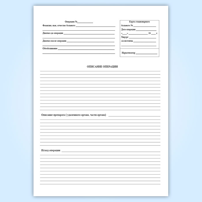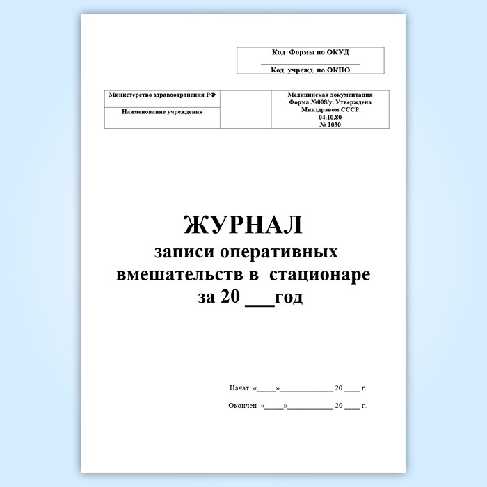 Журнал записи оперативных вмешательств в стационаре за год (форма 008/у) в Фрязино купить