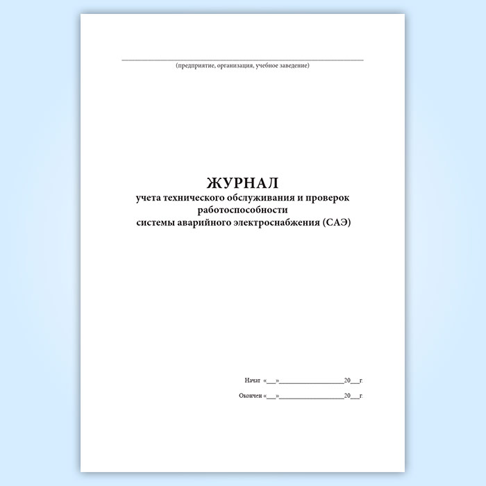 Журнал учета технического обслуживания и проверок работоспособности системы аварийного электроснабжения (САЭ) в Фрязино купить