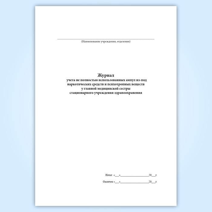 Журнал учета не полностью использованных ампул из-под наркотических средств и психотропных веществ у главной медицинской сестры стационарного учреждения здравоохранения в Фрязино купить