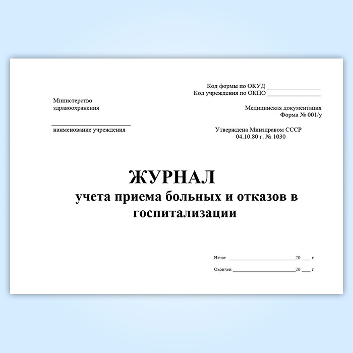 Журнал учета приема больных и отказов в госпитализации (форма 001/у) в Фрязино купить