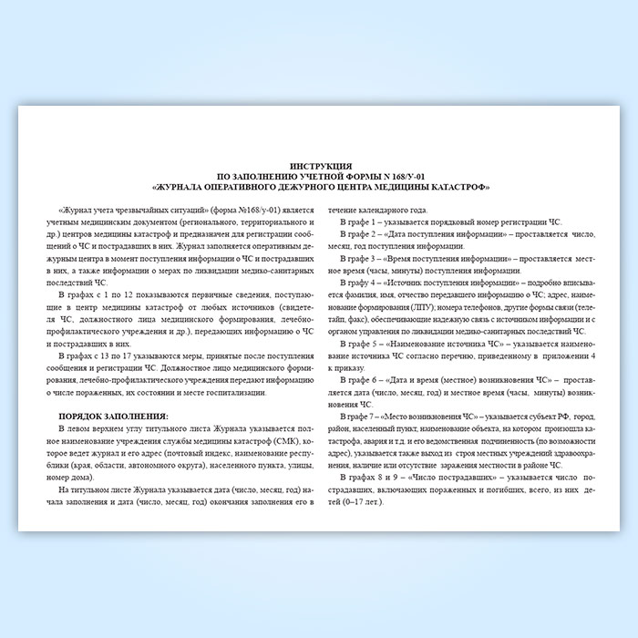 Журнал оперативного дежурного центра медицины катастроф (форма 168/у-01) в Фрязино купить