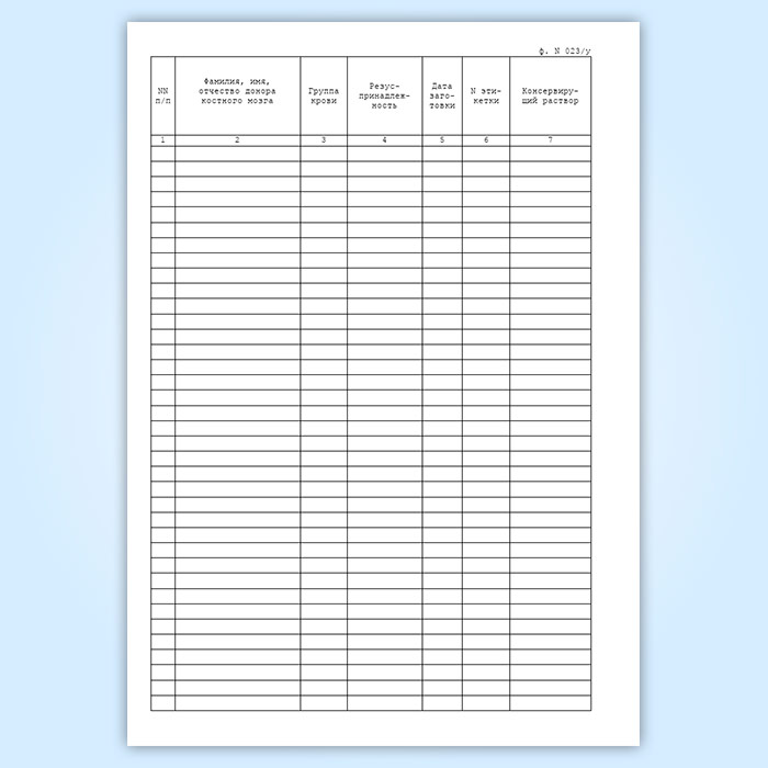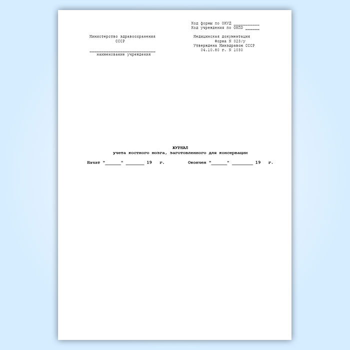 Журнал учета костного мозга, заготовленного для консервации (форма 023/у) в Фрязино купить