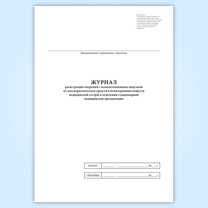 Журнал регистрации операций с использованными ампулами из-под наркотических средств и психотропных веществ медицинской сестры в отделении стационарной медицинской организации в Фрязино купить