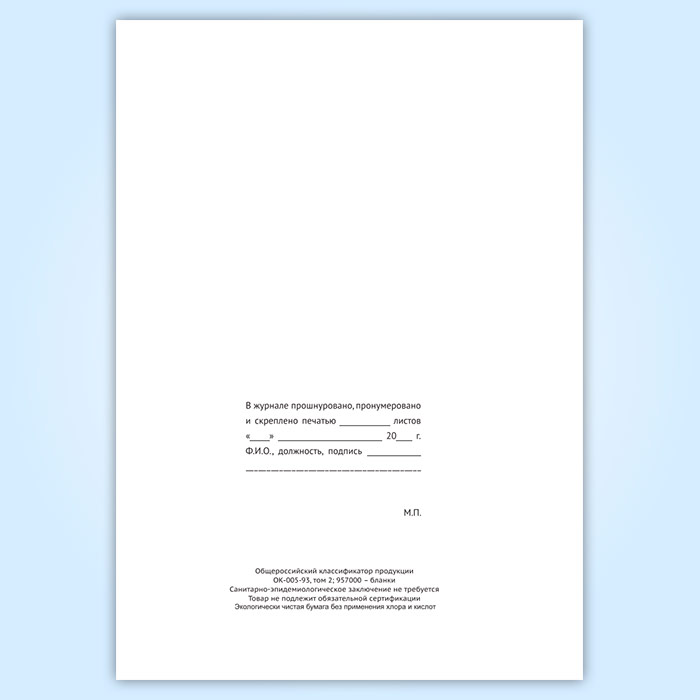 Вы получаете печатную продукцию прошнурованной и c местом для вашей печати в соответствии с действующими нормативными документами: