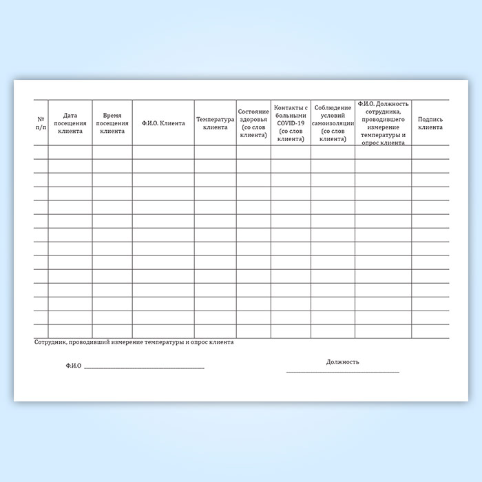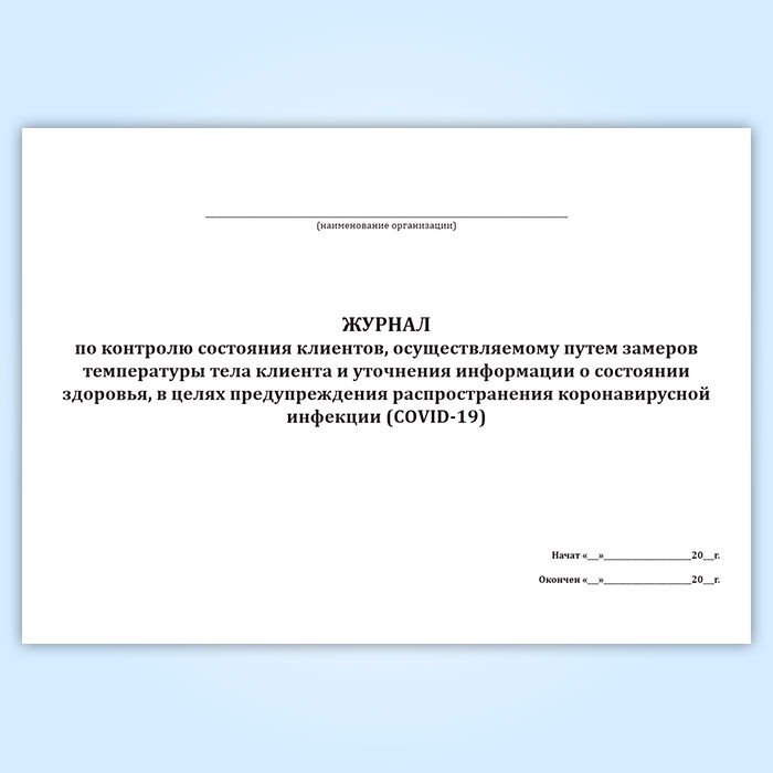 Журнал по контролю состояния клиентов, осуществляемому путем замеров температуры тела клиента и уточнения информации о состоянии здоровья, в целях предупреждения распространения коронавирусной инфекции (COVID-19) в Фрязино купить