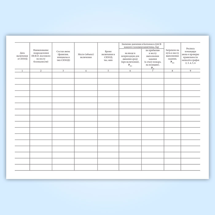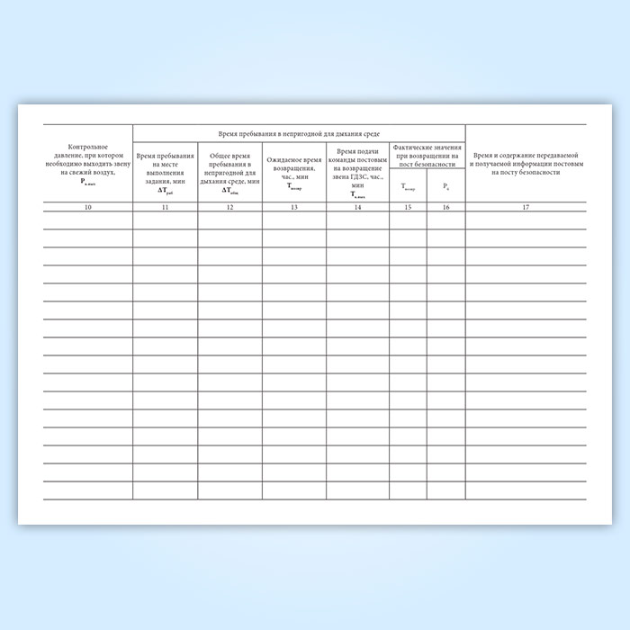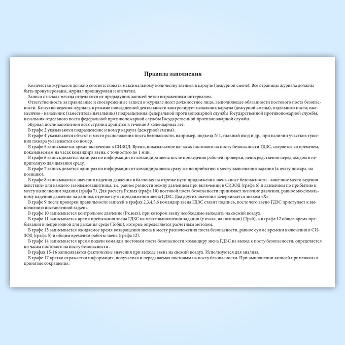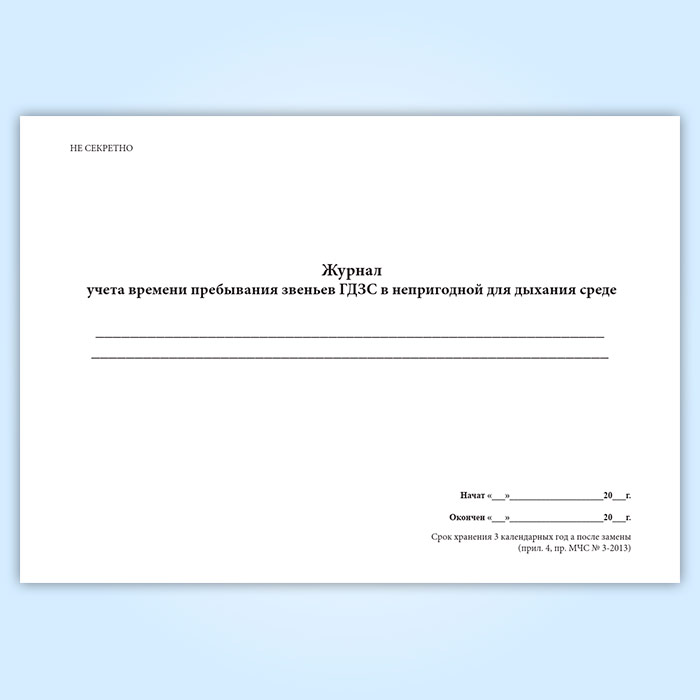 Журнал учета времени пребывания звеньев ГДЗС в непригодной для дыхания среде в Фрязино купить