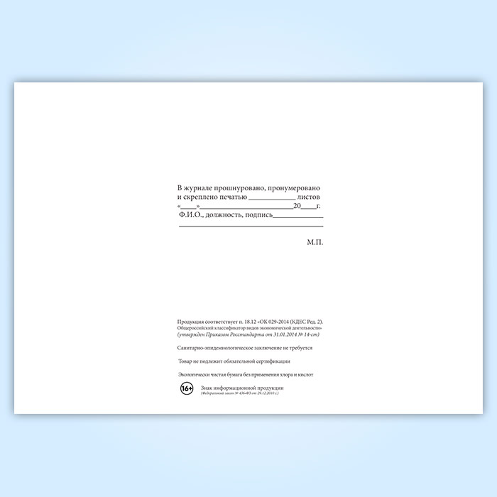 Вы получаете печатную продукцию прошнурованной и c местом для вашей печати в соответствии с действующими нормативными документами:
