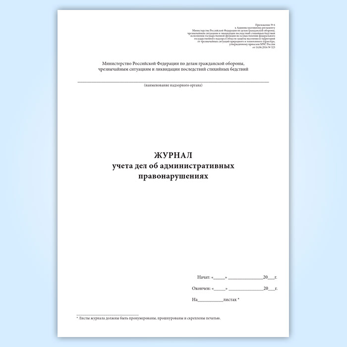 Журнал учета дел об административных правонарушениях (Приказ МЧС России от 14.06.2016 № 323) в Фрязино купить