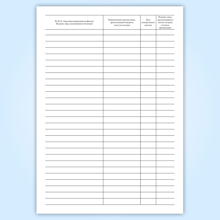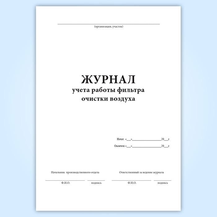 Журнал учета работы фильтра очистки воздуха в Фрязино купить